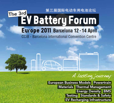 La tercera edición del EV Battery Forum tendrá lugar del 12 al 14 de abril de 2011 en el Centro Internacional de Convenciones de Barcelona.