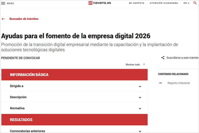 Las ayudas se concederán mediante un sistema de evaluación individualizada de cada solicitud. El plazo para presentar proyectos se abrirá cuando la convocatoria se publique en el Boletín Oficial de Navarra (BON). La digitalización empresarial figura como prioridad transversal en la Estrategia de Especialización Inteligente de Navarra S4 (2021-2027), donde se identifica como un elemento clave para reforzar la competitividad.