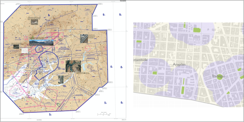 Cartas de vuelo urbanas. Alumn@s Arquitectura, Instalaciones Urbanas. Fuente: Simón Eduardo Pardo Muñóz. & Figura 2. Análisis de Islas y atractores. Elena Turrado y Alumn@s Gestión urbana. Fuente: Juan Manuel Taquechel Conde
