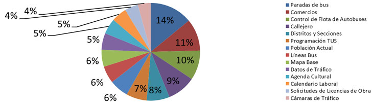 Se observa como la mayor utilización de datos se da en aquellos conjuntos de datos que están siendo utilizados por aplicaciones de terceros, centradas en los servicios públicos y que pueden consultarse en la web de la iniciativa.