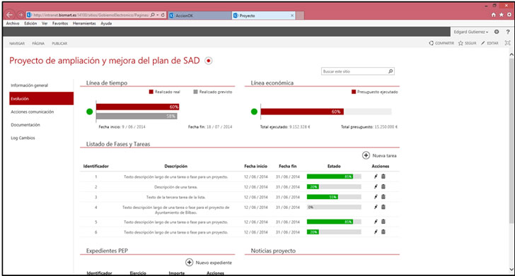 Sistema informático de gestión colaborativa, seguimiento de las prioridades de Gobierno y capacitación para la toma de decisiones, basado en un cuadro de mandos integral, un sistema de indicadores operacionales, un entorno de gestión de conocimiento y documental y una gestión de proyectos.