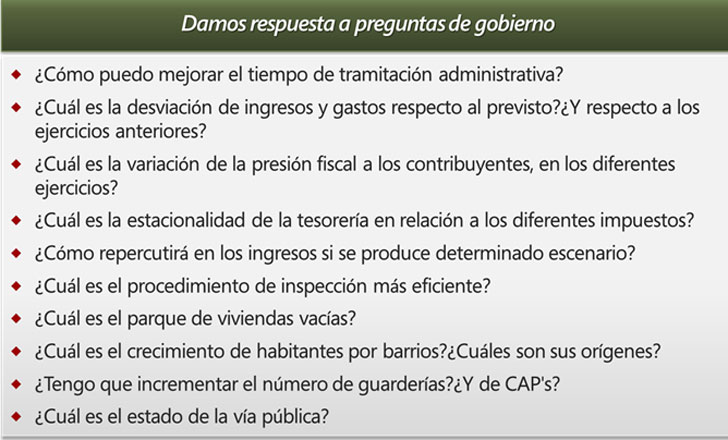 La solución dispone de modelos analíticos para cada una de las áreas de gobierno: