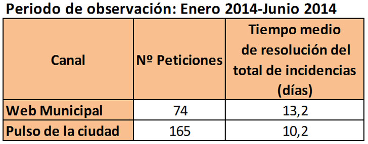 Se observa que en el mismo periodo han llegado un 55% más de peticiones a los Servicios municipales a través del Pulso de la Ciudad que a través del canal tradicional vía la web municipal.