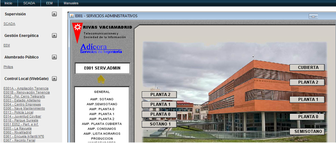 El proyecto tiene como objetivo optimizar los sistemas de control y gestión remotos aprovechando la red de infraestructura de Red Multiservicio (Basado en Fibra Optica) instalada en el municipio y que conecta las instalaciones municipales recorriendo una gran superficie del municipio. Al sistema Scada del Ayuntamiento se le ha implementado una herramienta para tratar todos los datos disponibles de consumos, temperaturas, horas de funcionamiento, etc., consiguiendo un tablero de mando de Gestión, de Análisis de Tendencias, de Informes y de Calidad de datos.